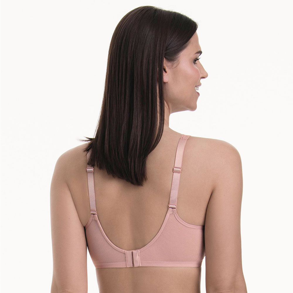 Dank der Prothesentaschen kann dort problemlos eine Epithese eingelegt werden, die auch bei Bewegung nicht verrutscht. Der Rücken aus Powertüll gibt zusätzlichen Halt. Unter engen Oberteilen fällt der BH kaum auf, da die Nähte glatt verarbeitet wurden und die hellrosa Farbe auch unter weißen Stoffen wie unsichtbar ist. Die gemoldeten Körbchen aus Spacer-Material kaschieren mögliche Unebenheiten. Das Spacer-Material besteht aus einem speziell geformten Abstandsgewebe, dass die Luft besser durchlässt und so auch bei warmen Temperaturen für ein angenehmes Tragegefühl sorgt.