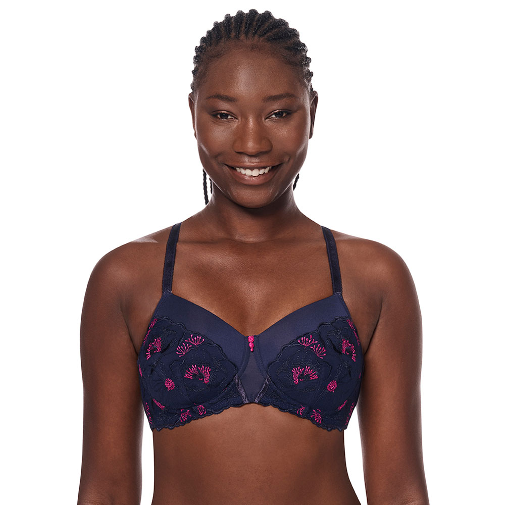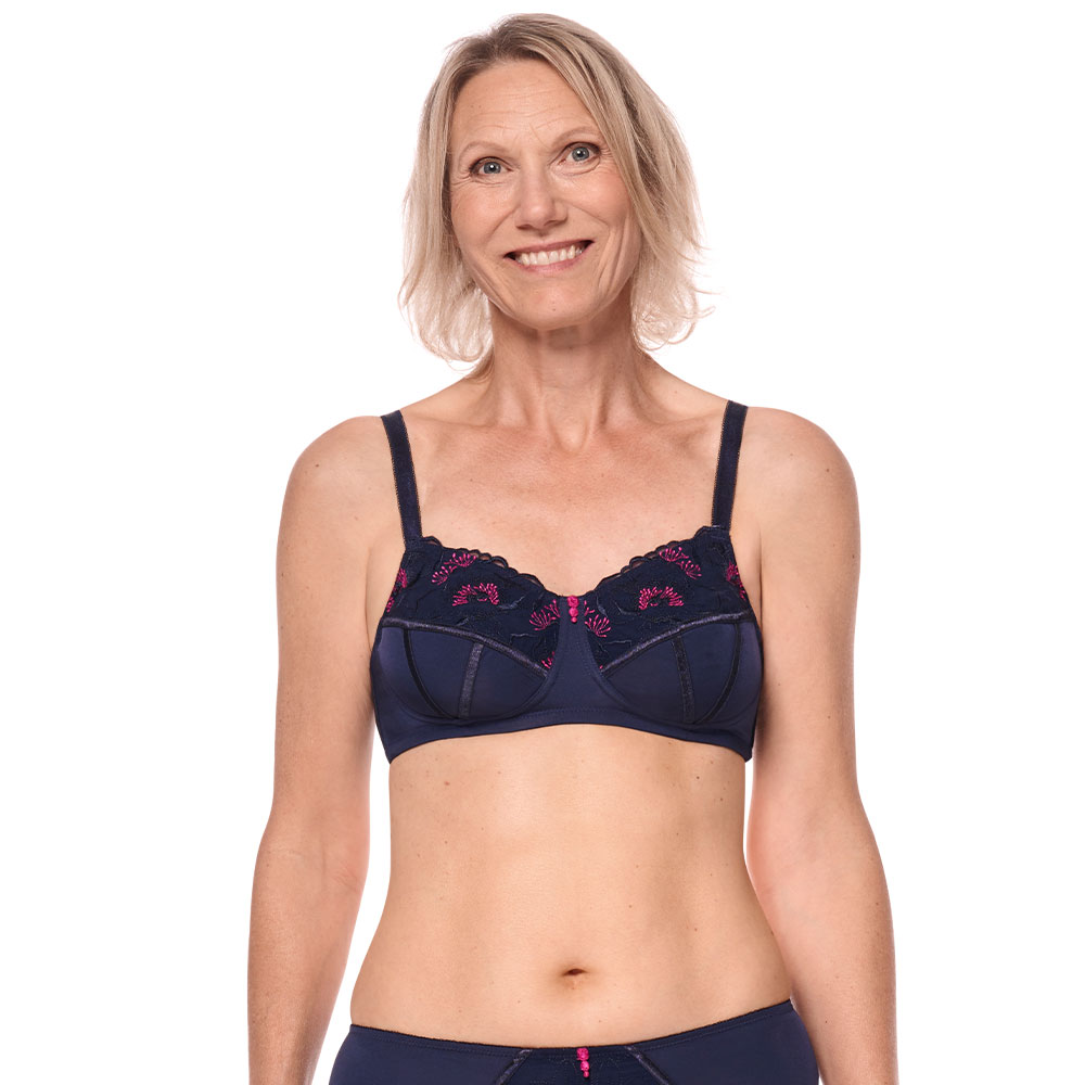 Femininer Soft-BH in Dunkelblau mit floraler Stickerei in Magenta